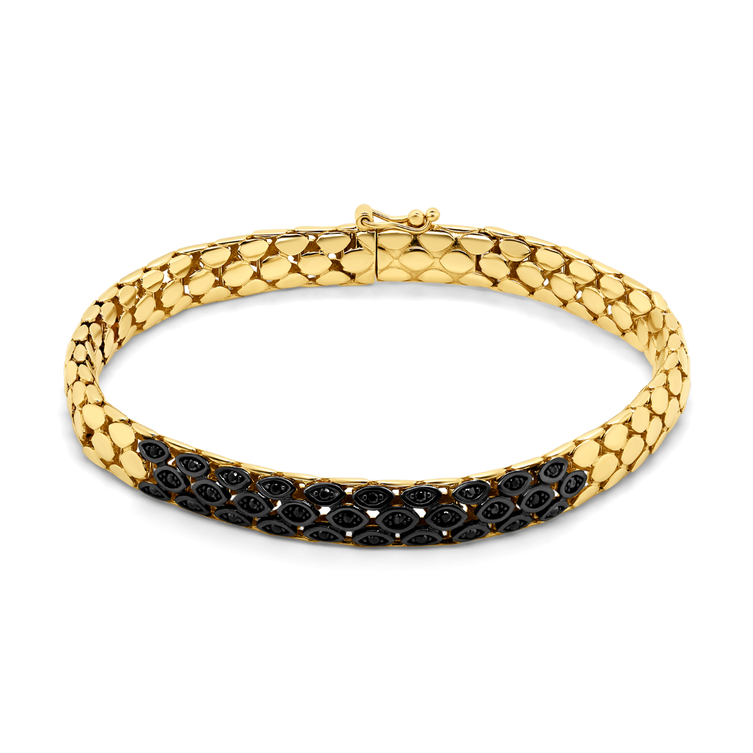 Brățară din aur galben de 14K cu rodiu negru și pietre Cubic Zirconia negre.