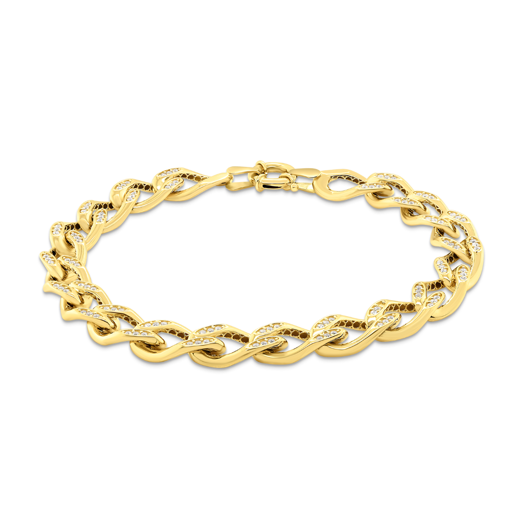 Brățară din aur galben de 14K cu pietre cubic zirconia.