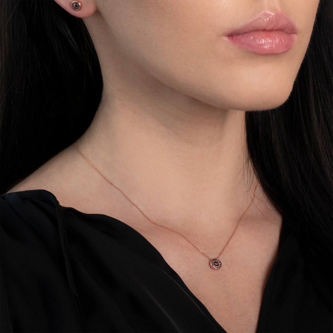 Lanț din aur roz de 14K și pandantiv cu pietre cubic zirconia.