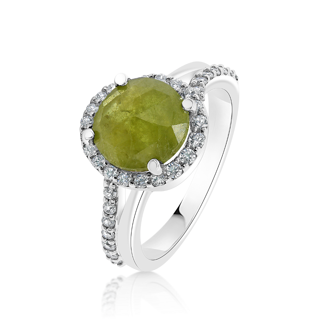 Inel din aur alb de 14K cu Agată verde și zirconia incolore.