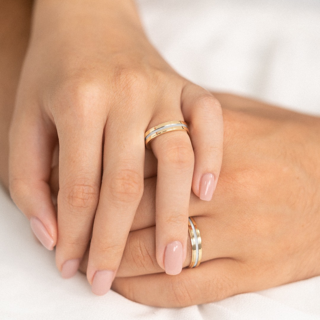 Verighetă bărbat Harmony 405 din aur galben de 14K și rodiu alb