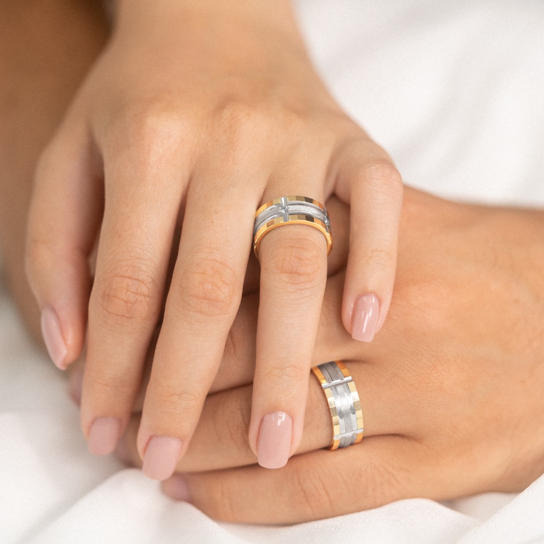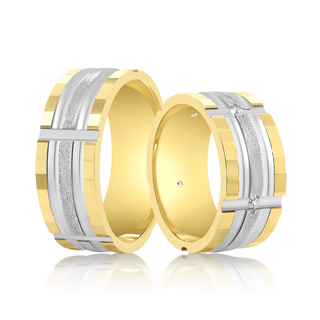 Verighetă damă Fancy 112 din aur galben de 14K și rodiu alb