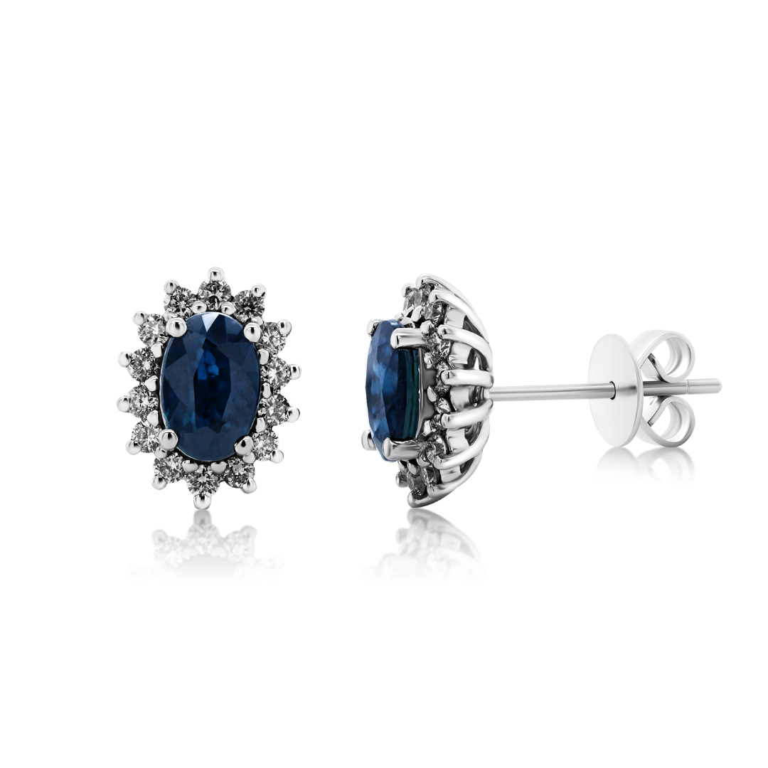 Cercei din aur alb de 14K, cu Diamante și Safire albastre