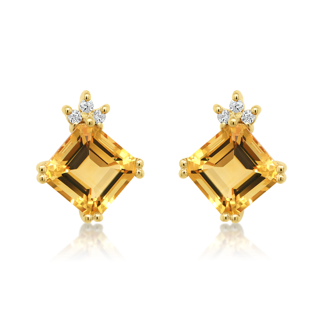 Cercei din aur galben de 18K cu 6 Diamante Round Brilliant de 0.10ct și două Citrine.