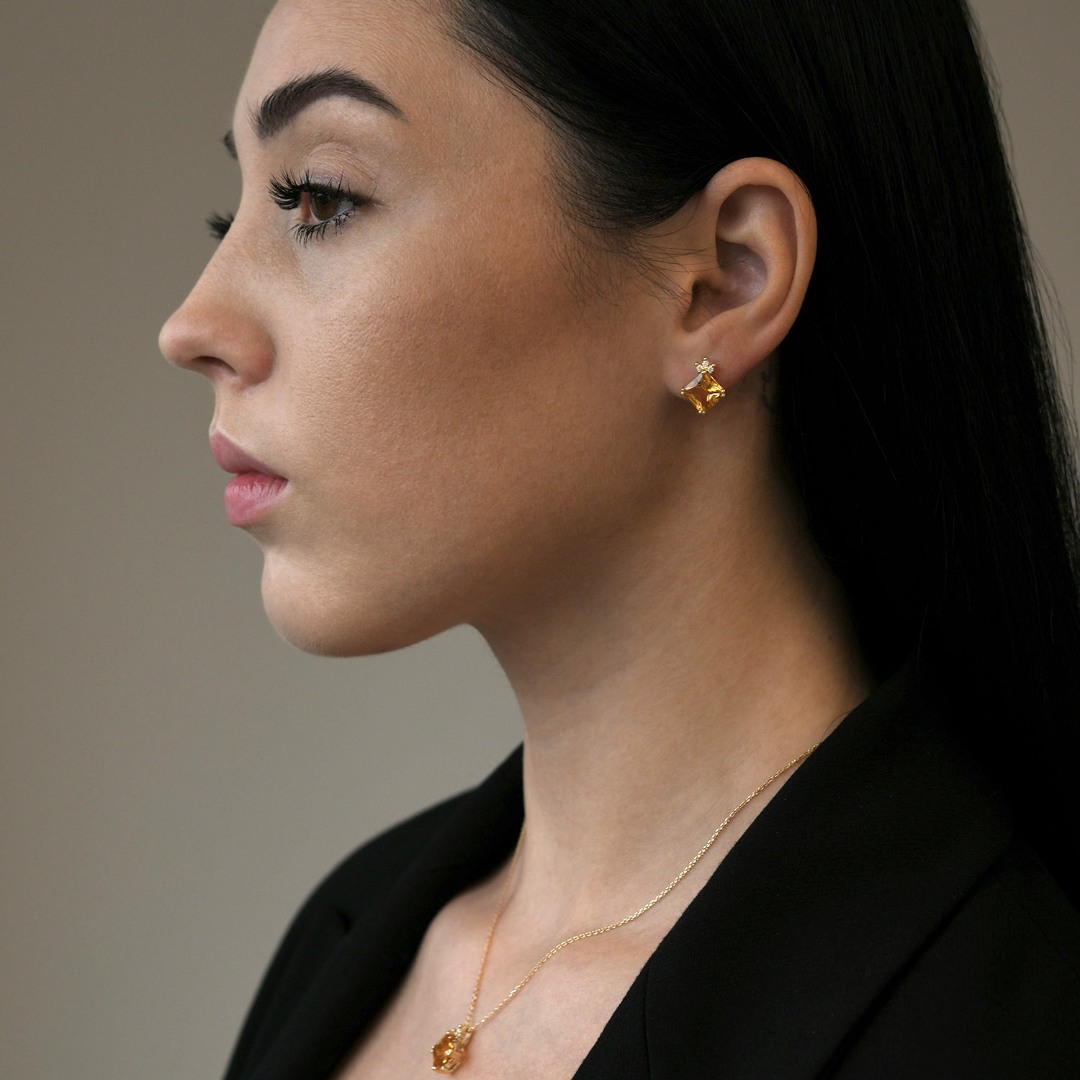 Cercei din aur galben de 18K cu Citrin și Diamante naturale