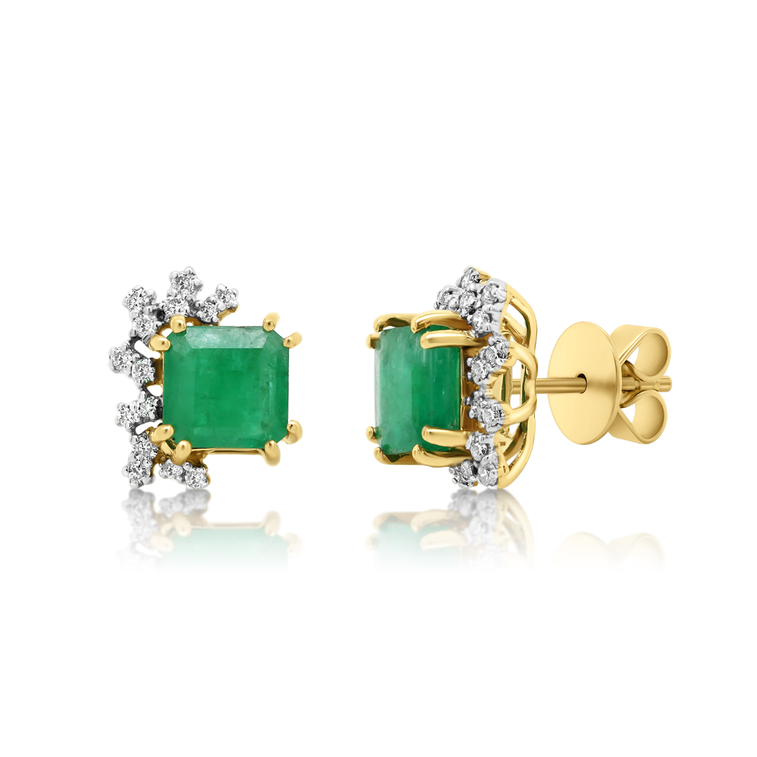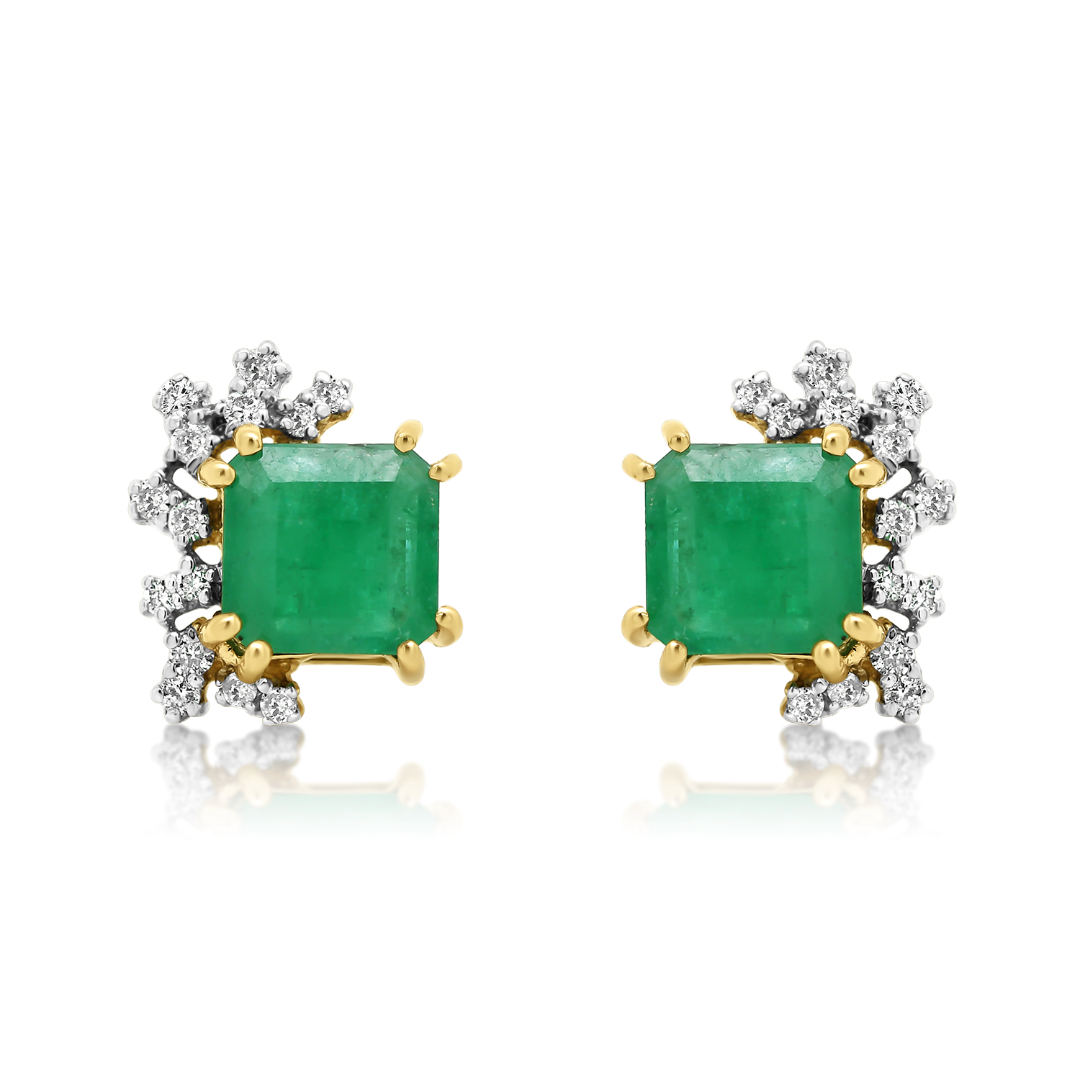 Cercei din aur galben de 18K, cu Smaralde și Diamante naturale