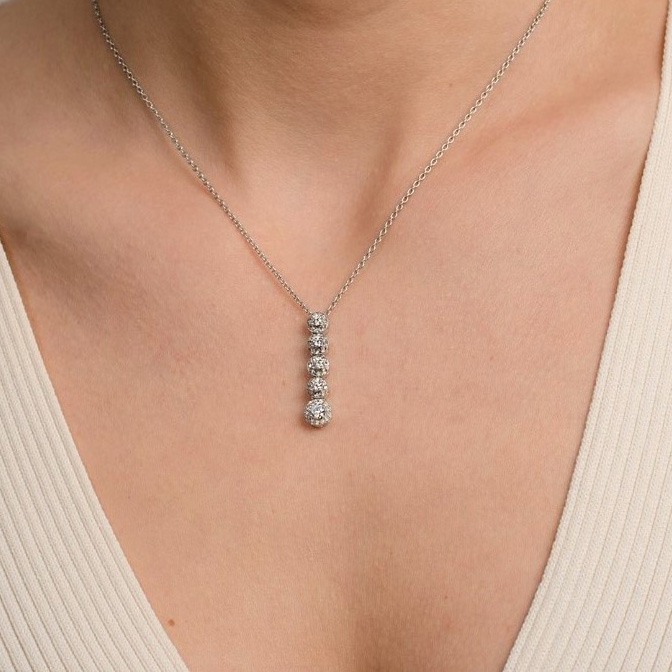 Lanț din aur alb 18K și pandantiv încrustat cu Diamante naturale Round Brilliant de 0.77ct.