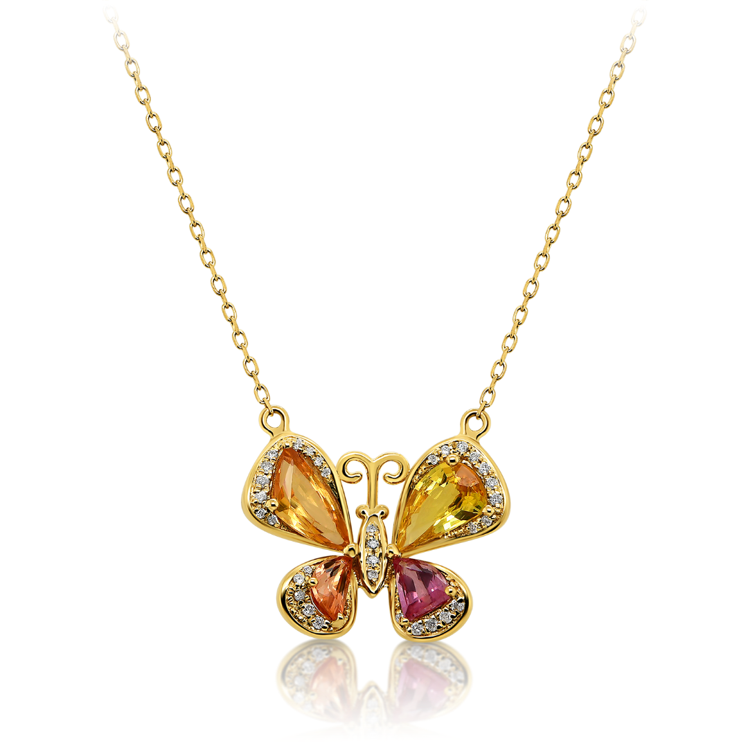 Lanț din aur galben de 18K și pandantiv cu 33 de Diamante de 0.096ct. și 4 Safire colorate de 1.83ct.
