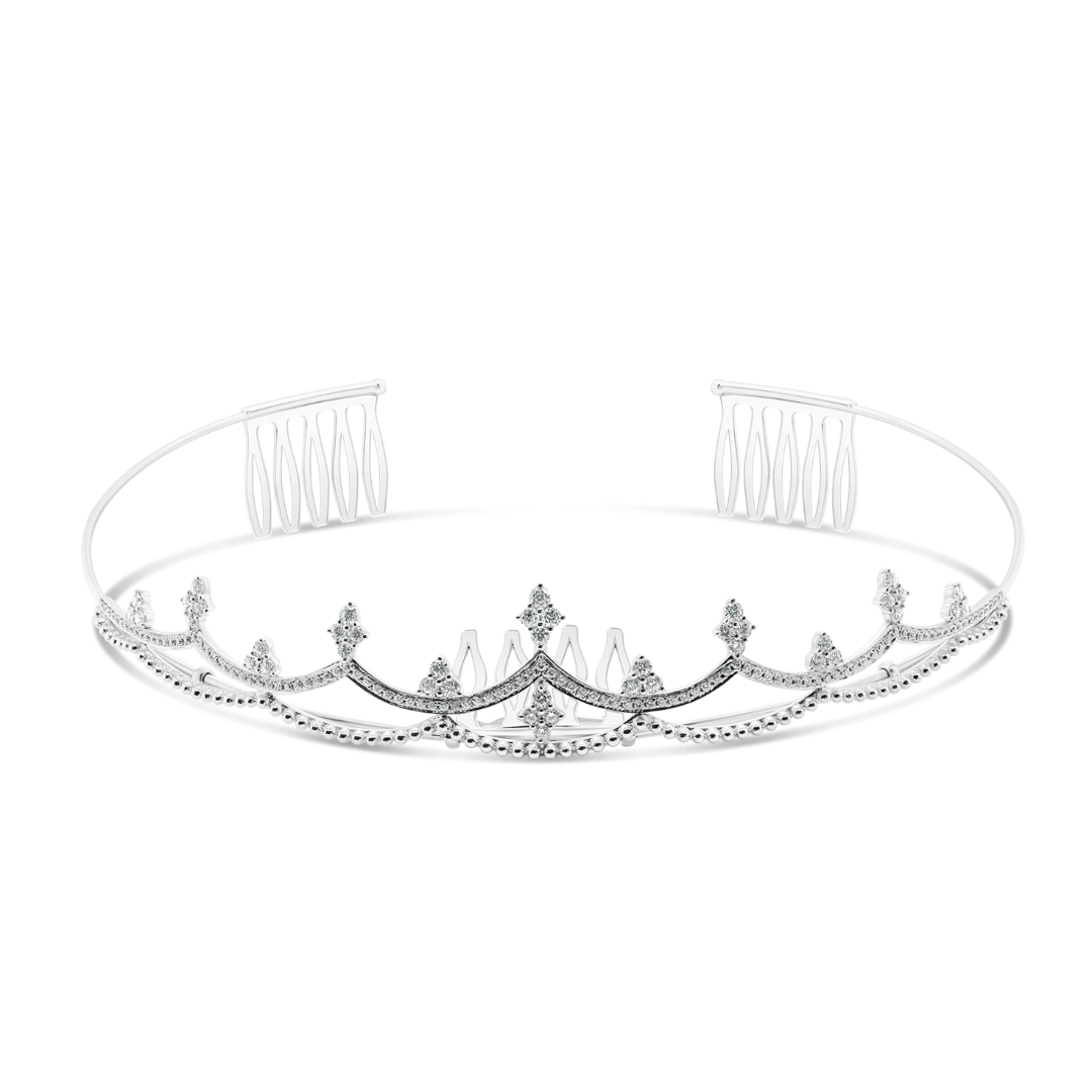 Tiară din aur alb de 18K cu Diamante naturale Round Brilliant
