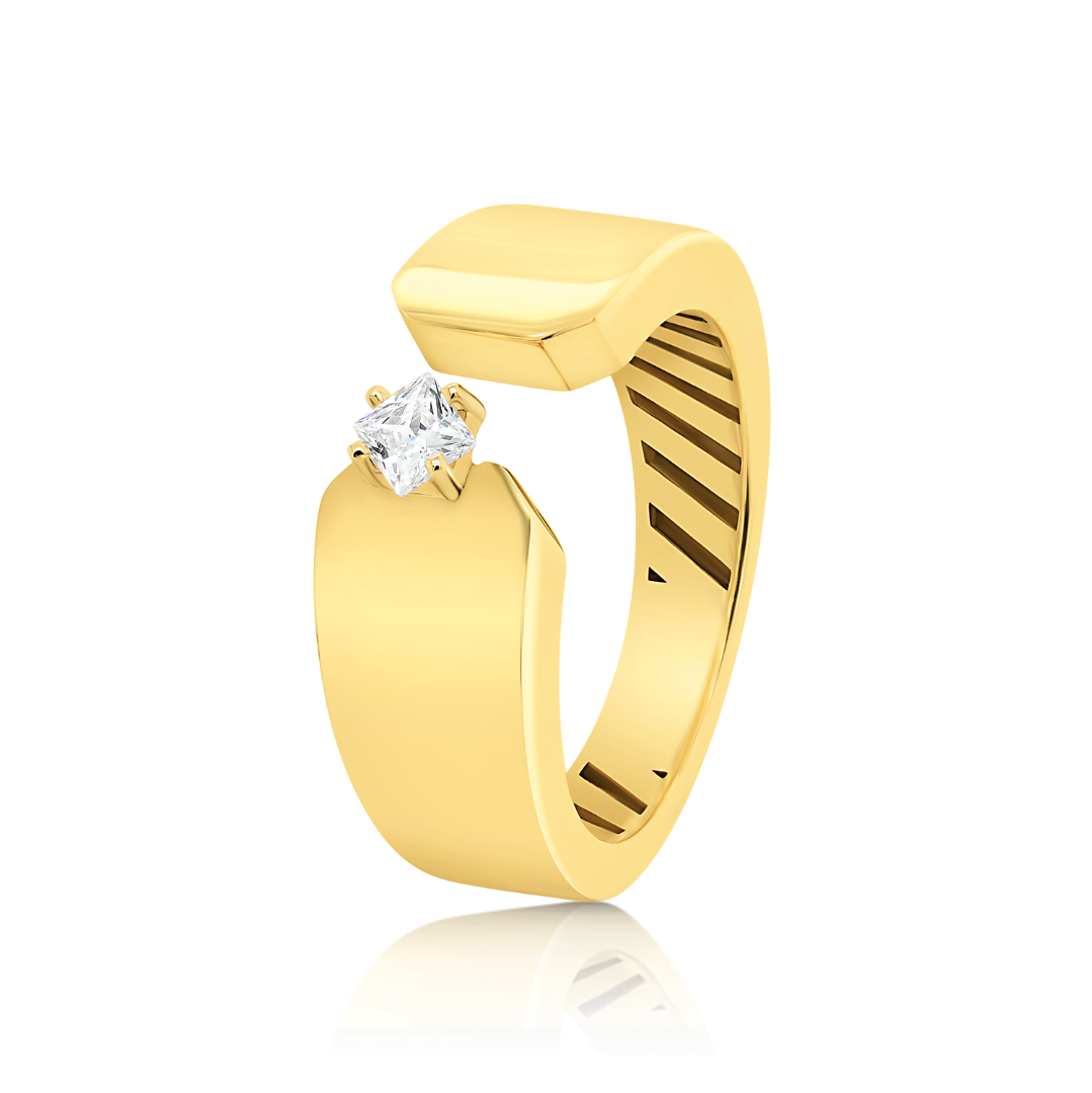 Inel din aur galben de 14K cu piatră cubic zirconia.