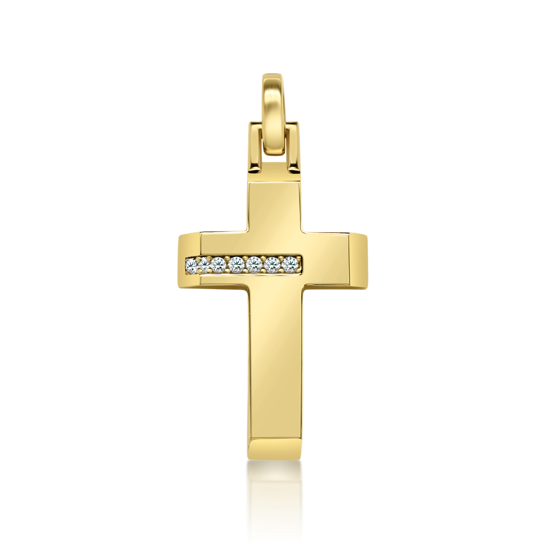 Pandantiv cruce din aur galben de 14K cu pietre Cubic Zirconia albe.