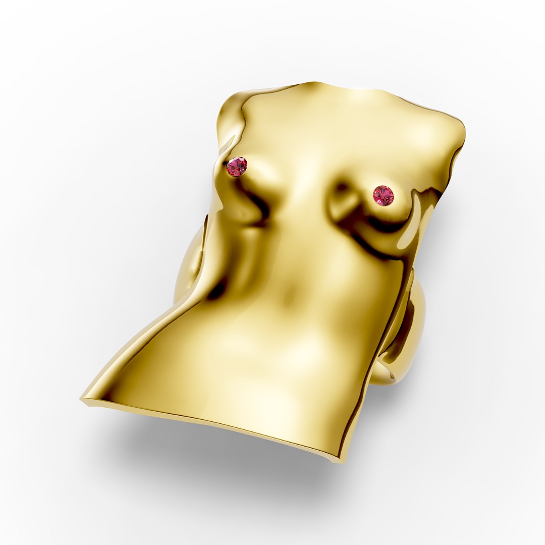 Frumusețea naturală a trupului feminin este evidențiată prin prezența a două rubine naturale, simboluri ale puterii și farmecului nemuritor al muzelor care au traversat timpul.