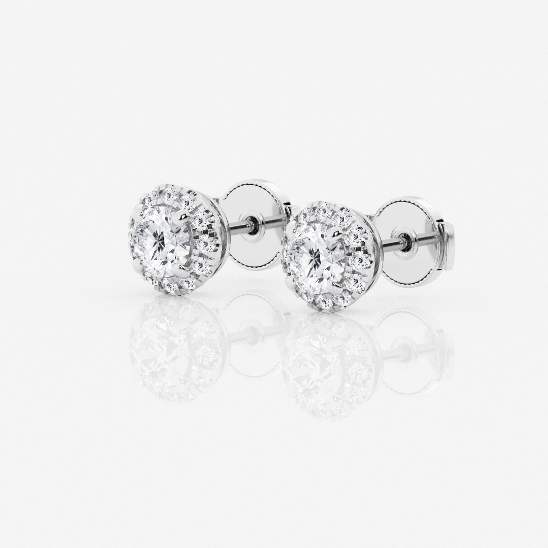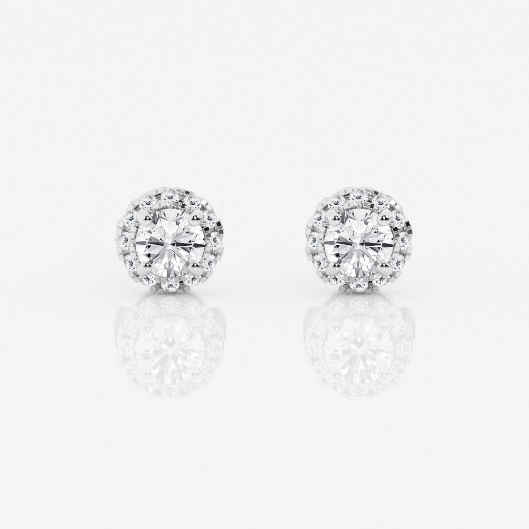 Cercei din aur alb de 14K cu 26 de Diamante Round Brilliant de 0.98ct, create în laborator.