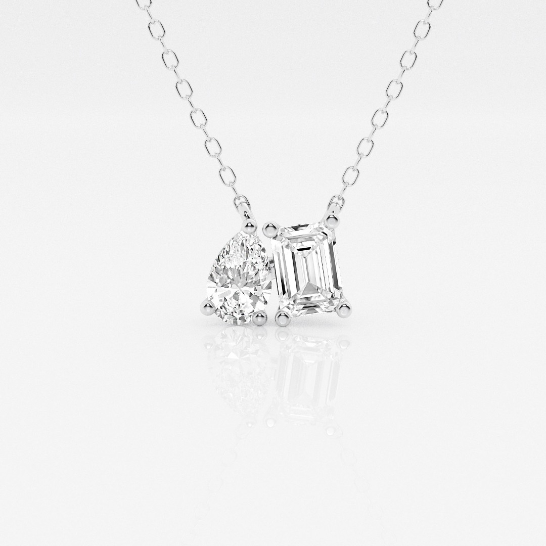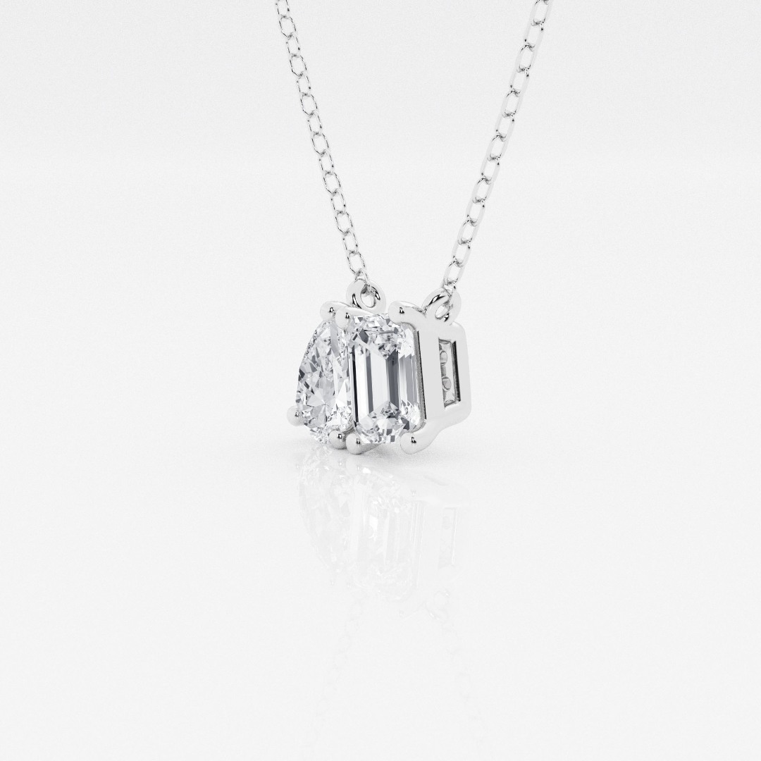 Lanț din aur alb de 14K și pandantiv încrustat cu un Diamant Emerald cut și un Diamant Pear, create în laborator.