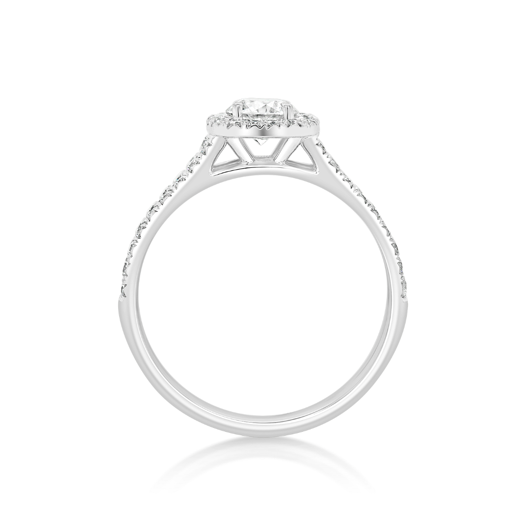 Inel din aur alb de 18K cu un Diamant Round Brilliant certificat la Institutul Gemologic GIA cu numărul 2368320382 și 54 de Diamante de 0.43ct.